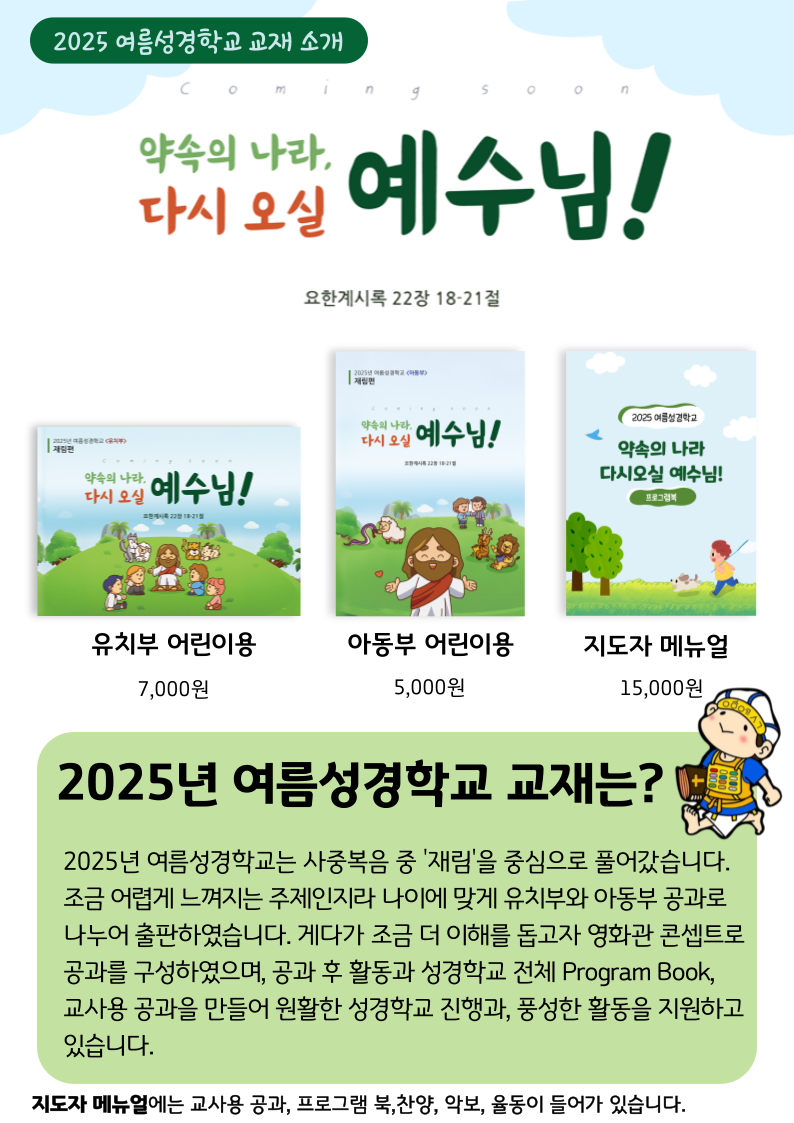 제목 2025년 여름성경학교 교재 소개 2025-05-30