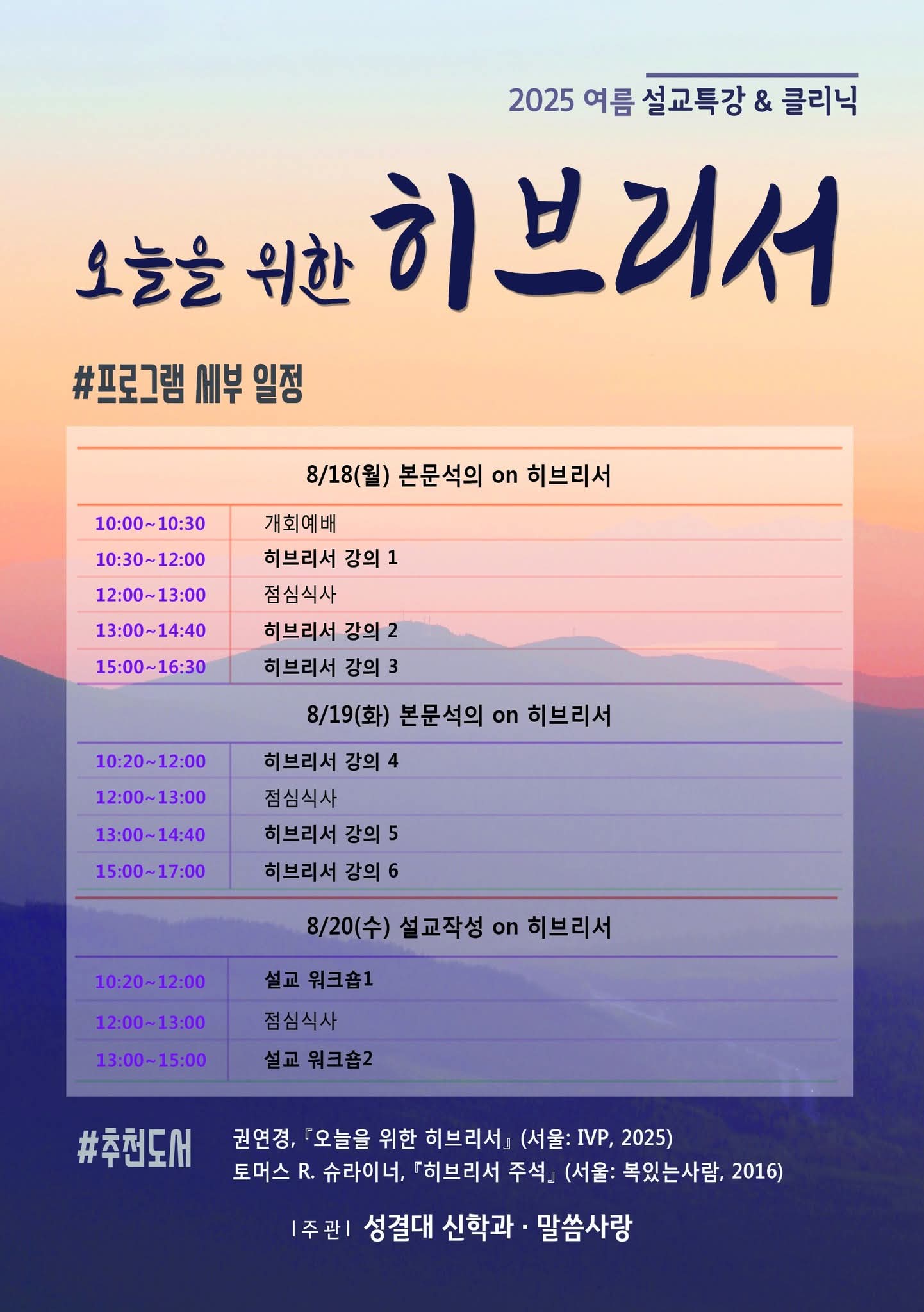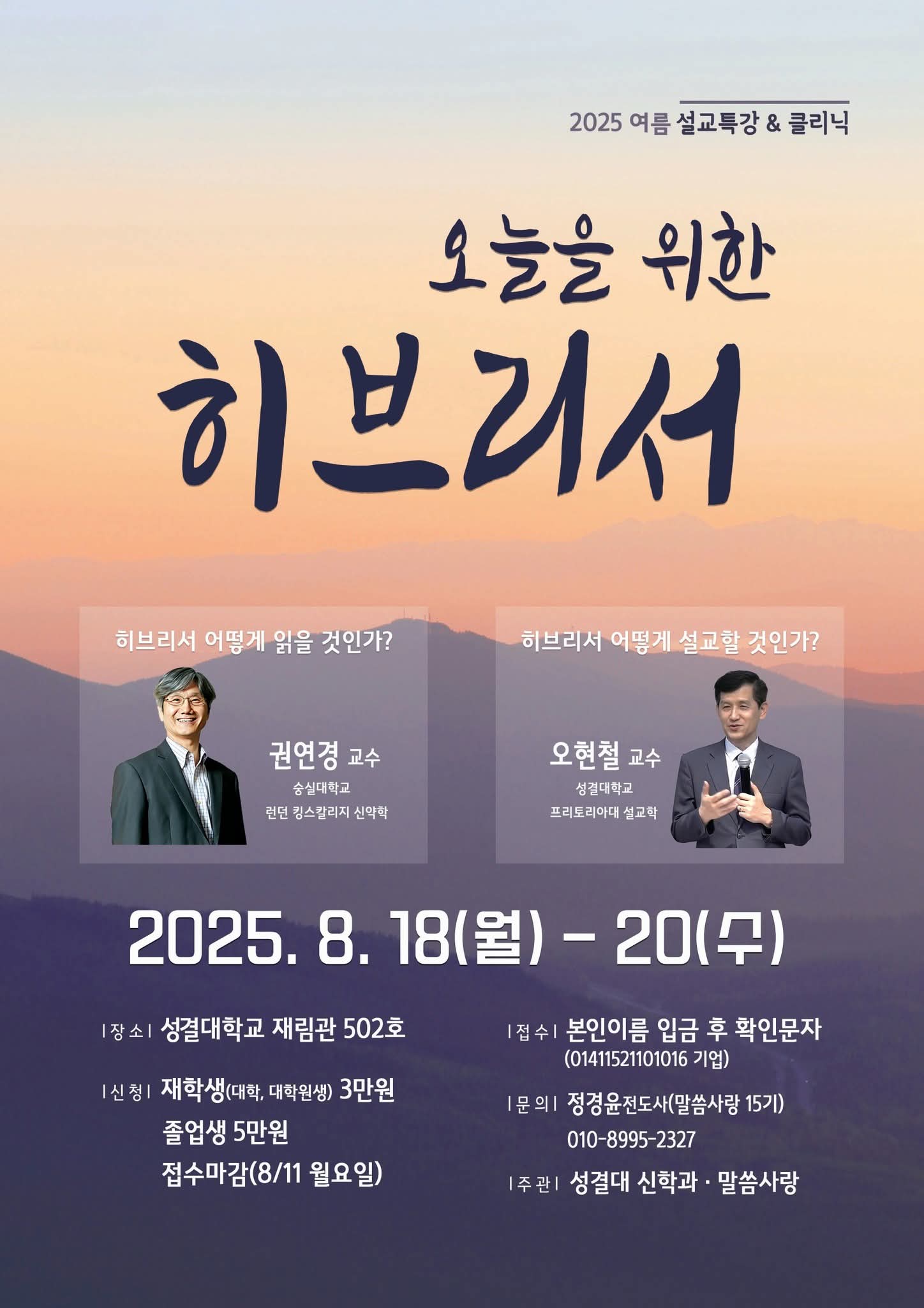 2025 여름 말씀사랑 설교특강 & 클리닉 히브리서 신청마감 D-3