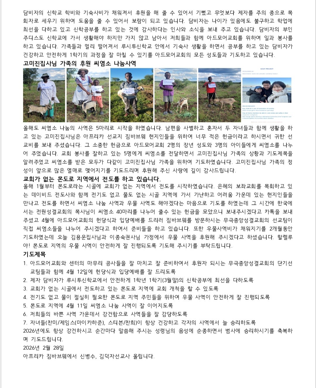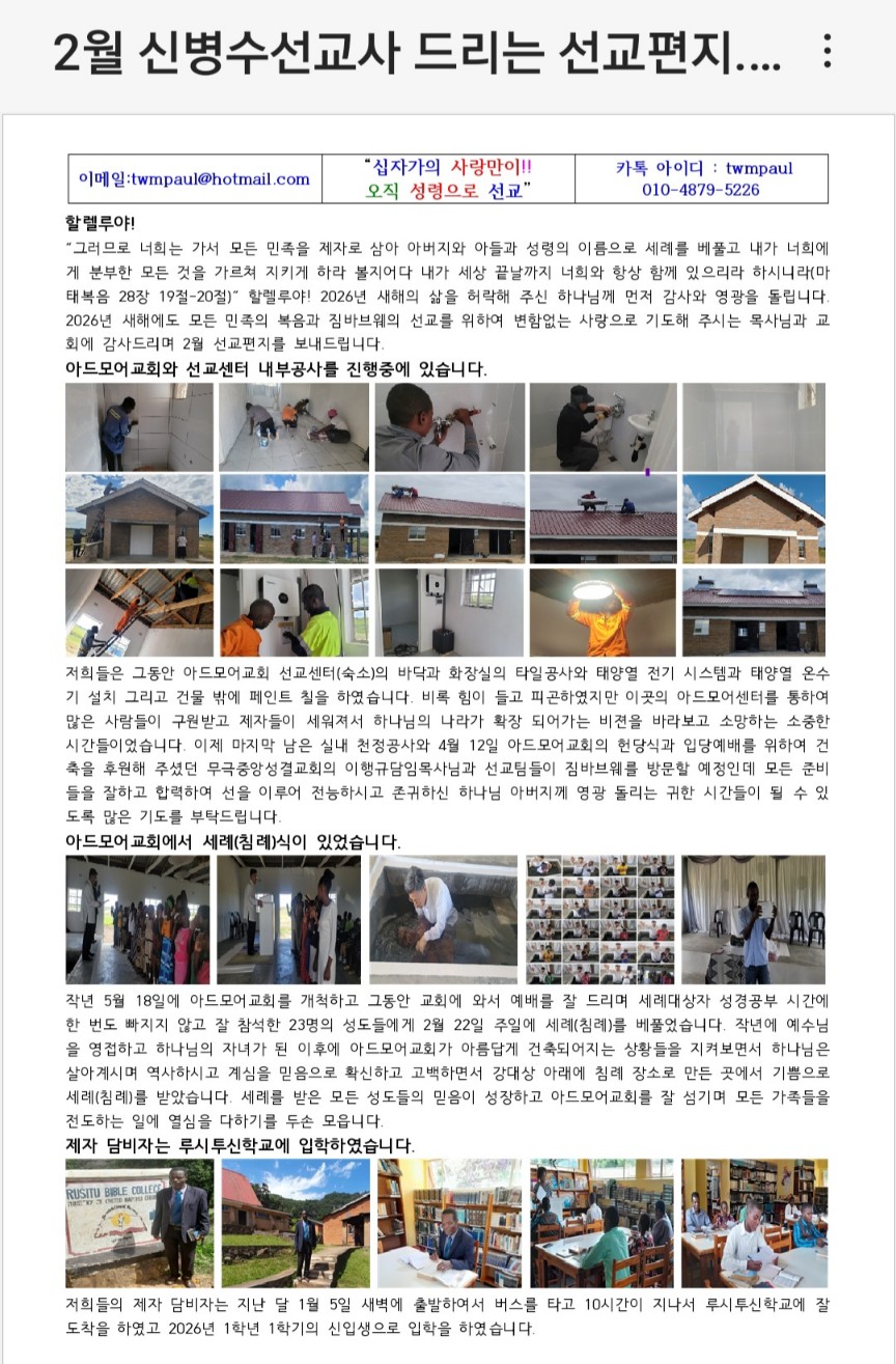 제목 2월 짐바브웨 신병수 선교사 소식 2026-03-03
