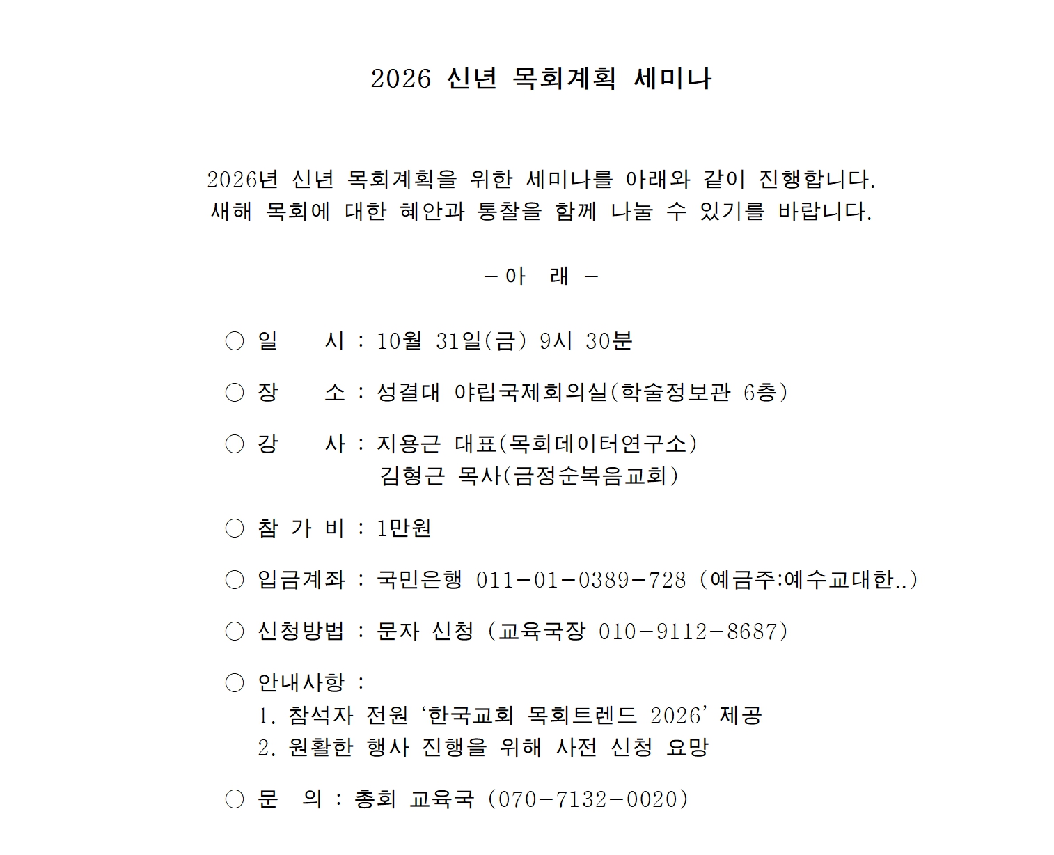 제목 2026 신년 목회계획 세미나 초청 2025-10-16