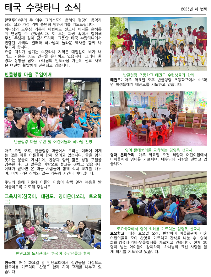 제목 태국 정환&김영옥 선교사 10월 소식입니다 2025-10-15