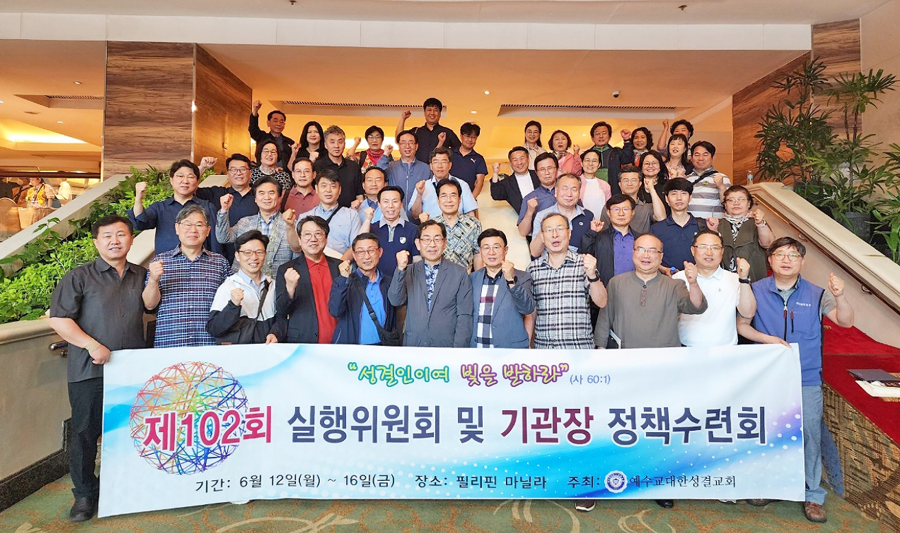 제102회 총회 실행위원회 및 기관장 정책수련회가 6월 12일(월)부터 16일(금)까지 필리핀 마닐라에서 있었다. “성결인이여 빛을 발하라”(사 60:1)라는 주제로 4박 5일 동안 진행된 금년 정책수련회에는 총회 실행위원들과 각 기관장, 총회직원들을 포함하여 총 54명이 프로그램에 참여했으며, A팀과 B팀으로 나누어 일정이 이뤄졌다.