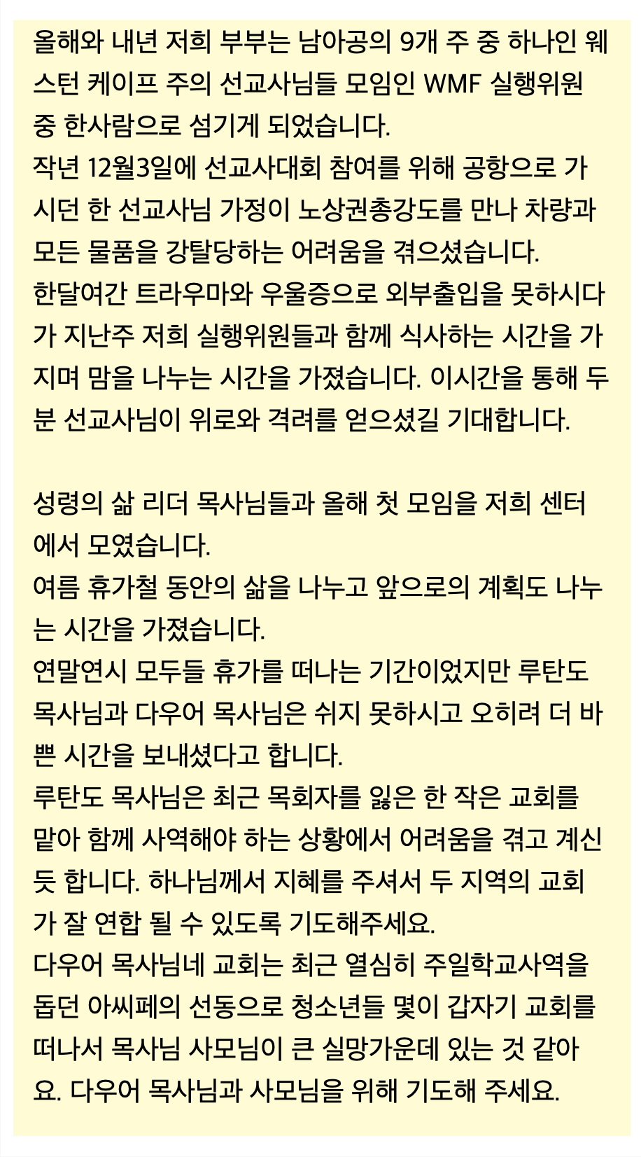제목 남아공 김경래 선교사의 1월 소식입니다 2025-02-03