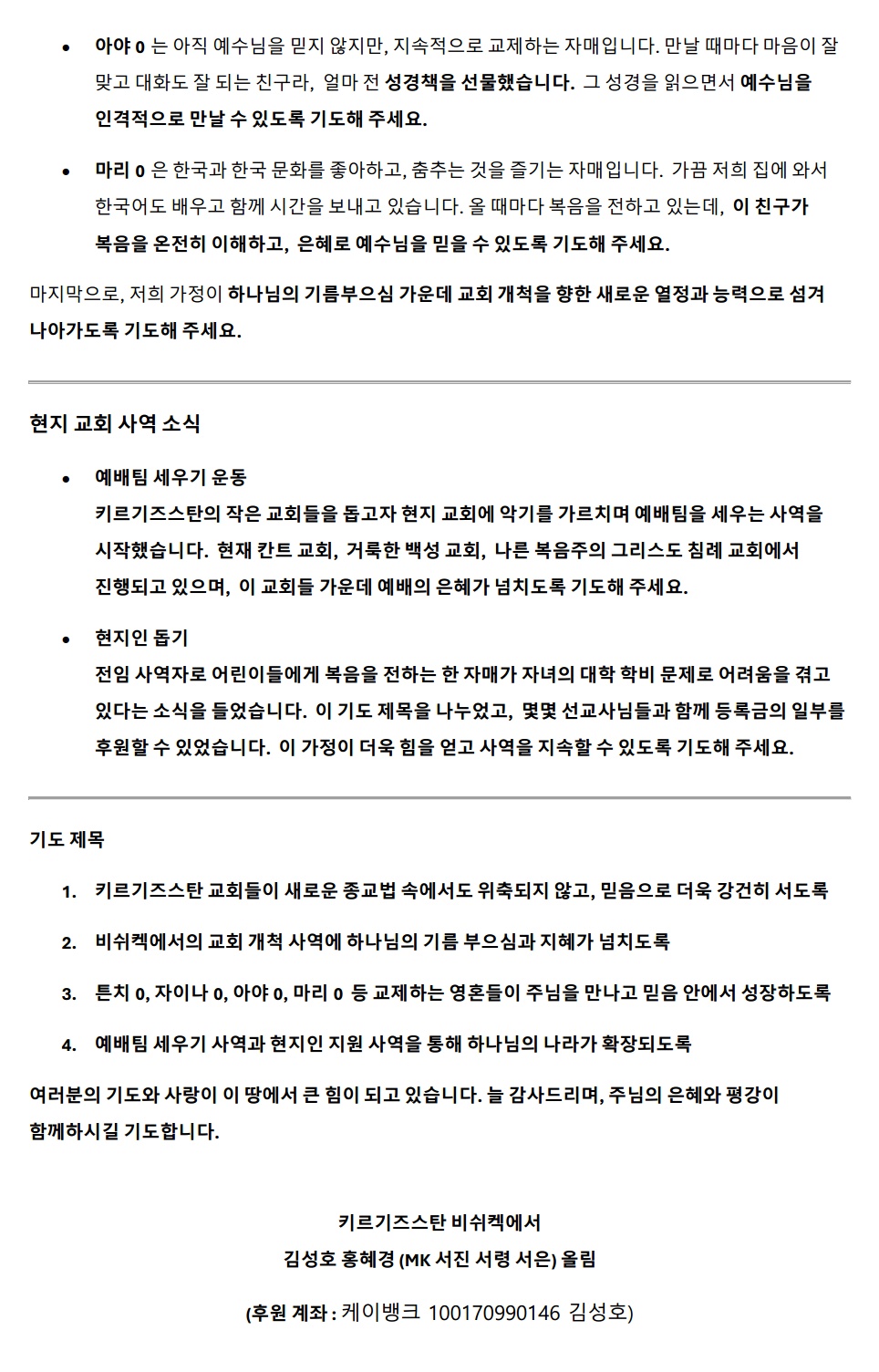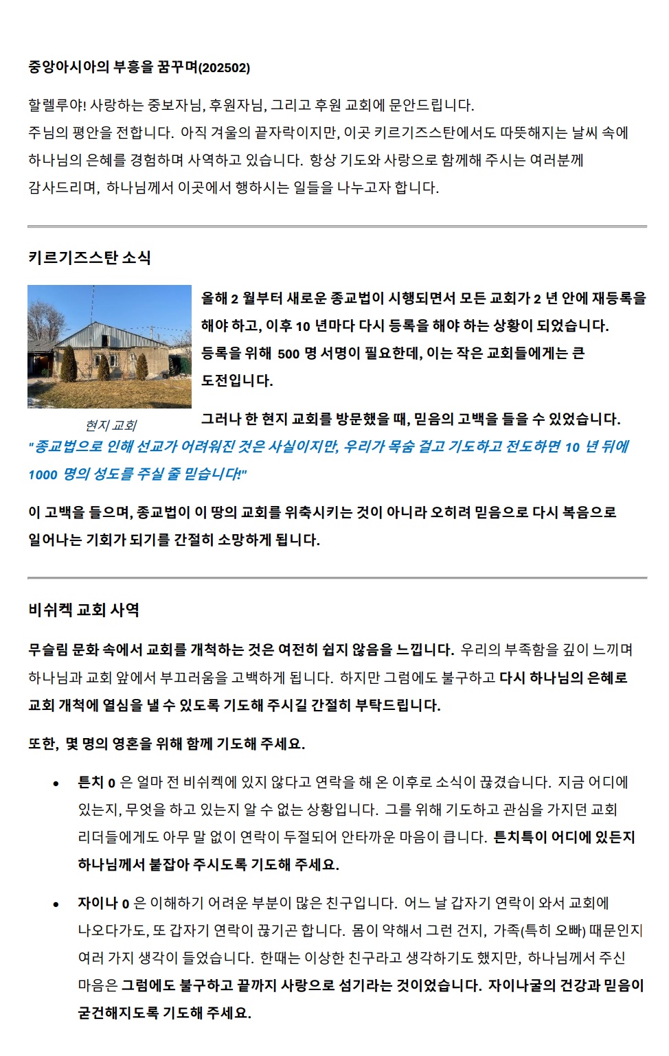 제목 키르기즈스탄 김성호 선교사의 2월 소식입니다 2025-02-26