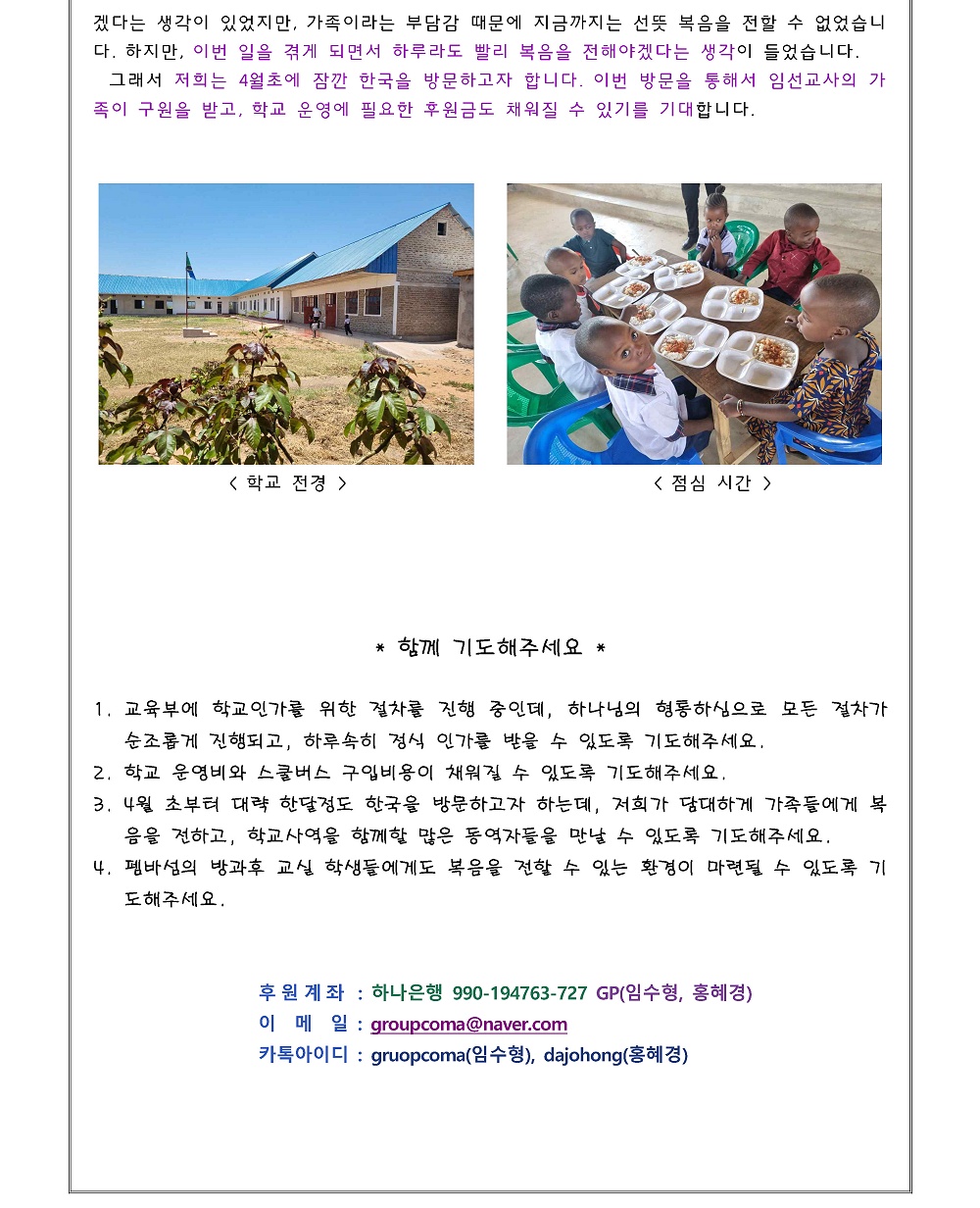 제목 탄자니아 임수형 선교사의 3월 소식입니다 2025-03-26