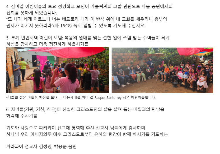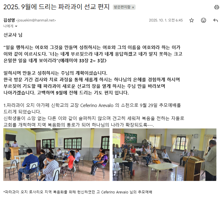 제목 파라과이 김성영&박용순 선교사 소식입니다 2025-10-27