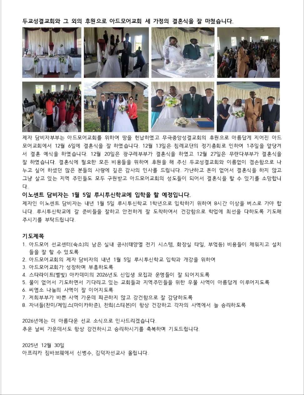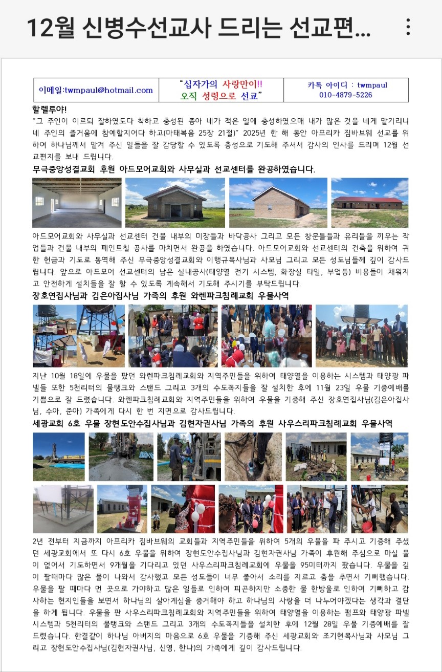 제목 짐바브웨 신병수 선교사 소식 2026-01-02