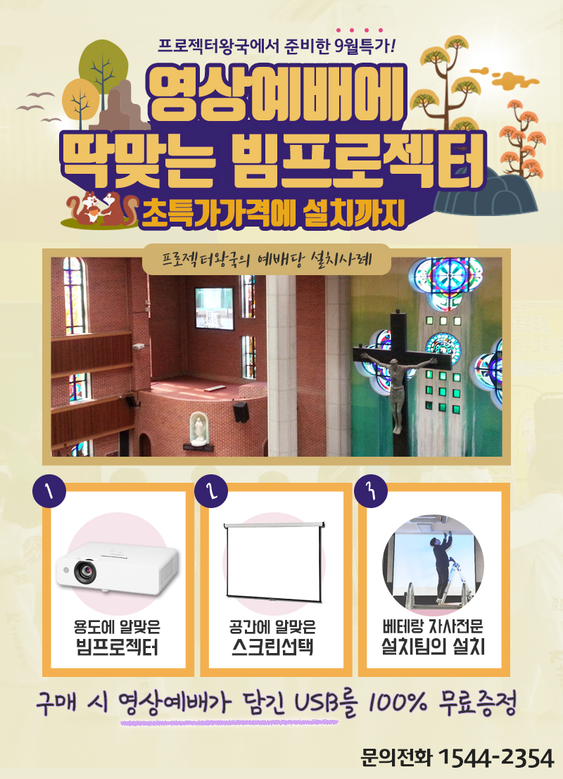 제목 ★빔프로젝터 설치패키지 초특가★ 설치까지 완벽하게! 영상예배담긴 USB무료증정! 2019-09-02