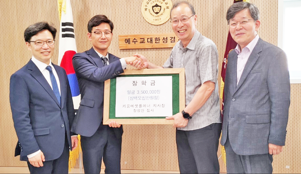 목회자 자녀들의 잇따른 교단 사랑이 화제가 되고 있다. 포근한교회 장종용 목사의 장남 장성산 집사가 지난해 목회자 자녀 장학금 지급과 올해 초 예성 캐릭터 공모전 찬조에 이어 지난 7월 7일에는 목회자 자녀와 신학교 학생들을 위해 써달라며 장학금을 쾌척했다. 총회는 이날 회의실에서 교단총무 이강춘 목사가 함께한 가운데 전달식을 가졌다.