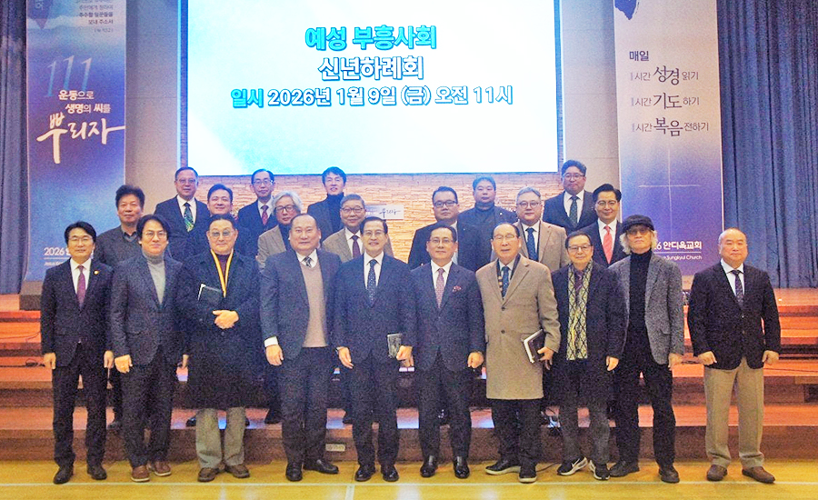 2026년 새해를 맞이하여 예성 부흥사회(대표회장 고신원 목사)가 지난 1월 9일(금) 오전 11시, 경기도 고양시 안디옥교회(홍석영 목사) 영해홀에서 신년하례회를 개최했다. 이날 회원들은 예배와 교제를 통해 한 해의 사역을 하나님께 맡기고, 부흥과 회복, 비전을 함께 나누는 자리로 마련했다.